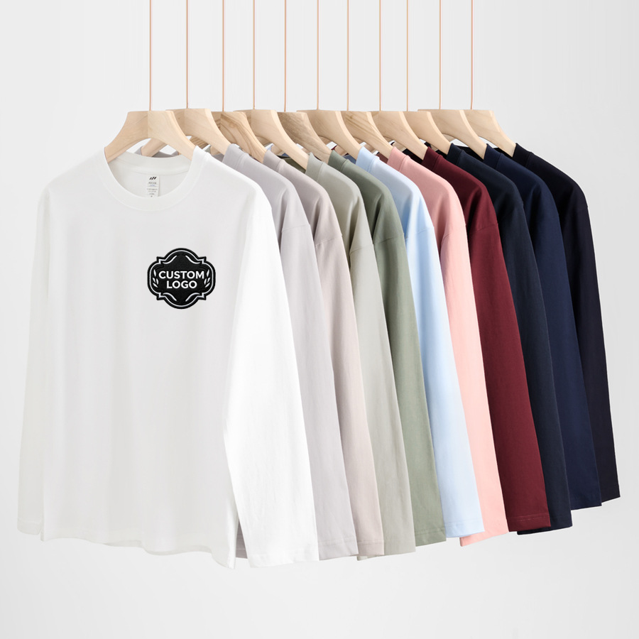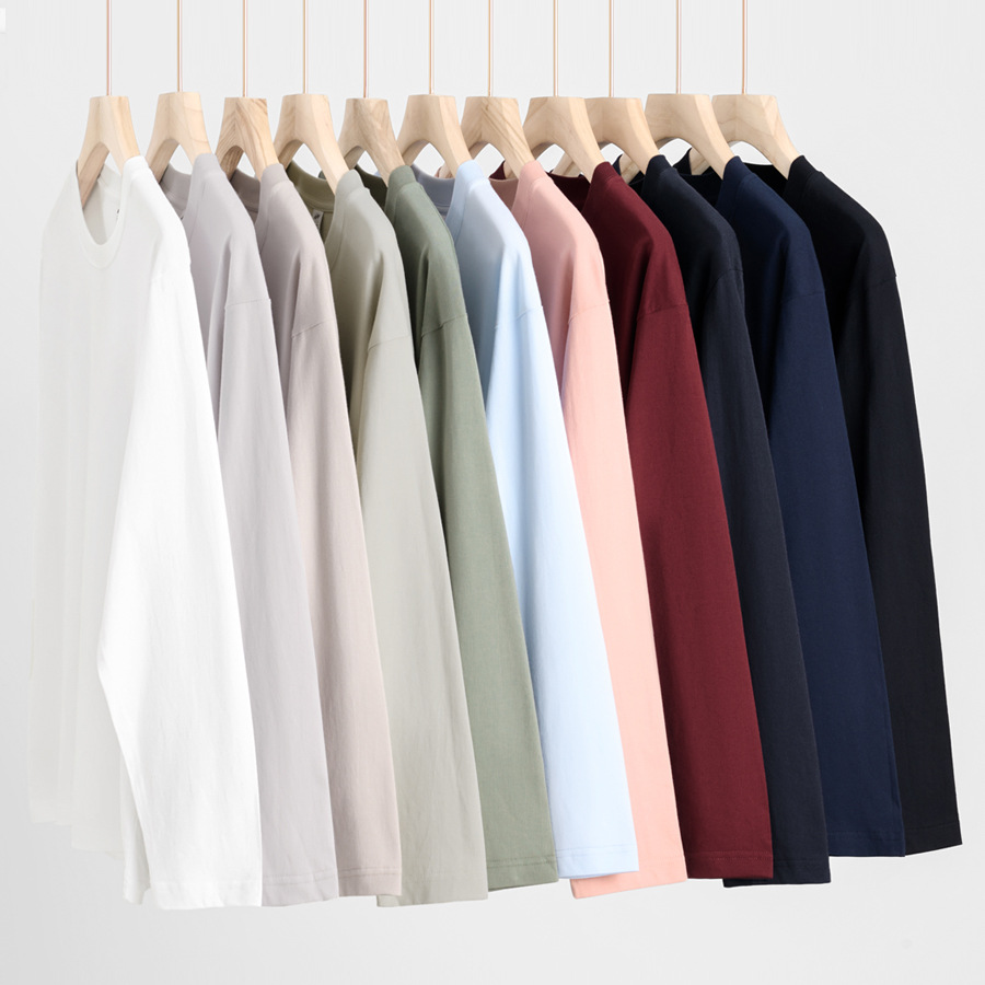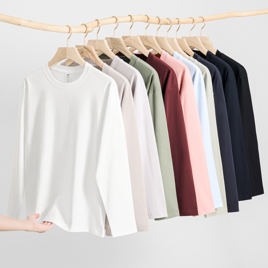 230g Heavy Weight Pure Cotton White Long Sleeved T-shirt Men's Custom T Shirts Solid Color Round neck Underneath High Quality