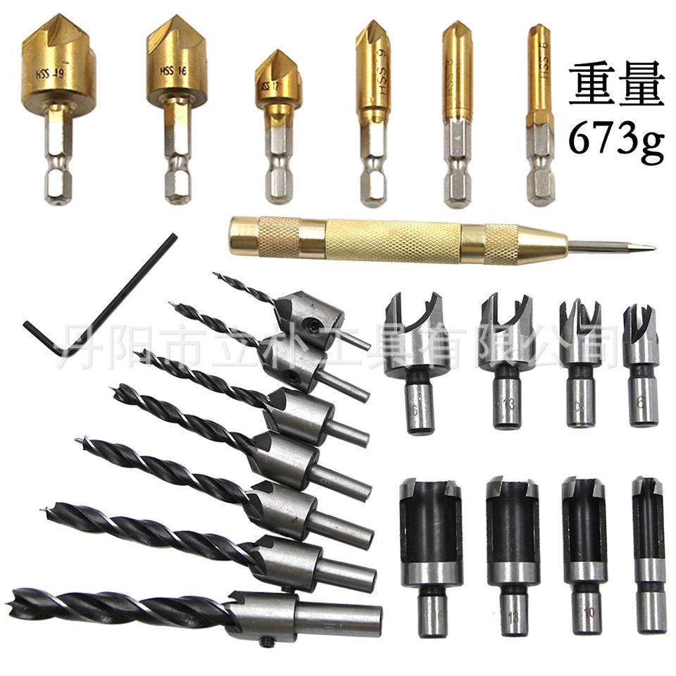 23Pcs Woodworking Drill Bit Set Forstner Plug Cutting Bits Chamfering Tool With Center Punch 6.35mm Shank Diameter