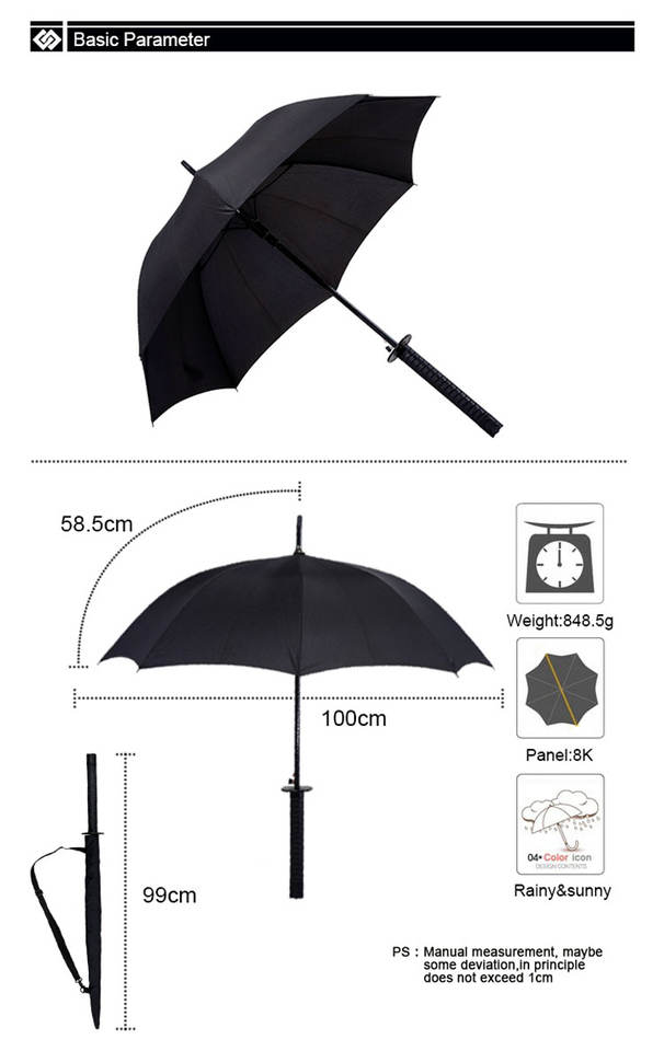 Name:stick straight customized umbrella with samurai sword shape handle