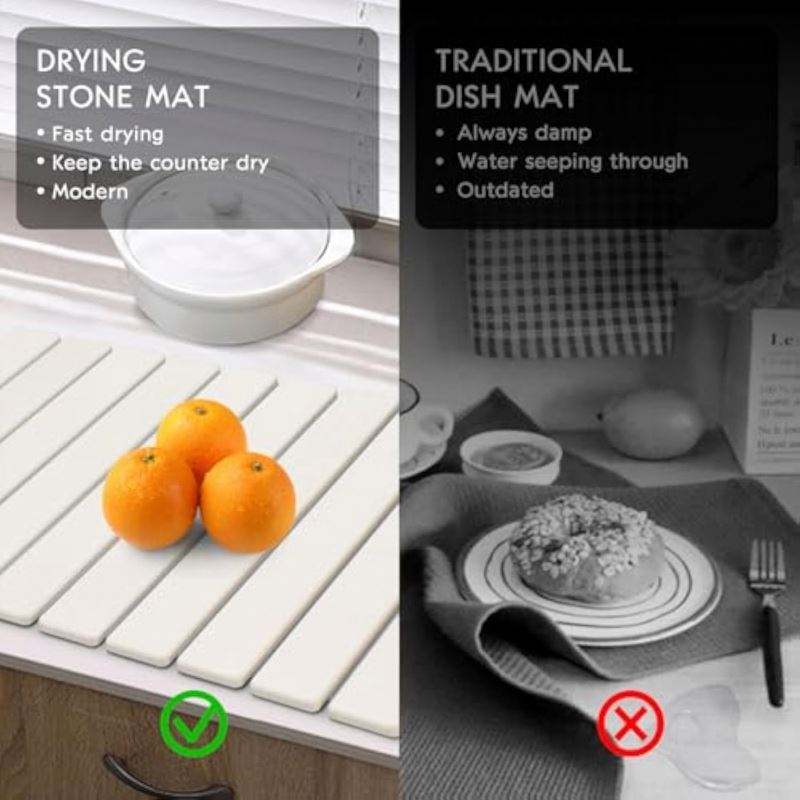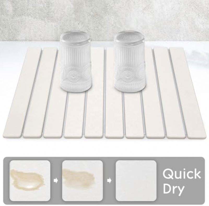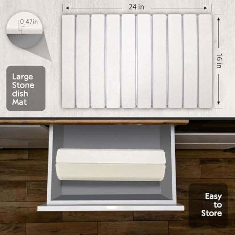 24*16 Inch Super Absorbent Stone Dish Drying Mat Fast Dry Collapsible Bath Kitchen Counter Machine Made Diatomite Stone Bath Mat