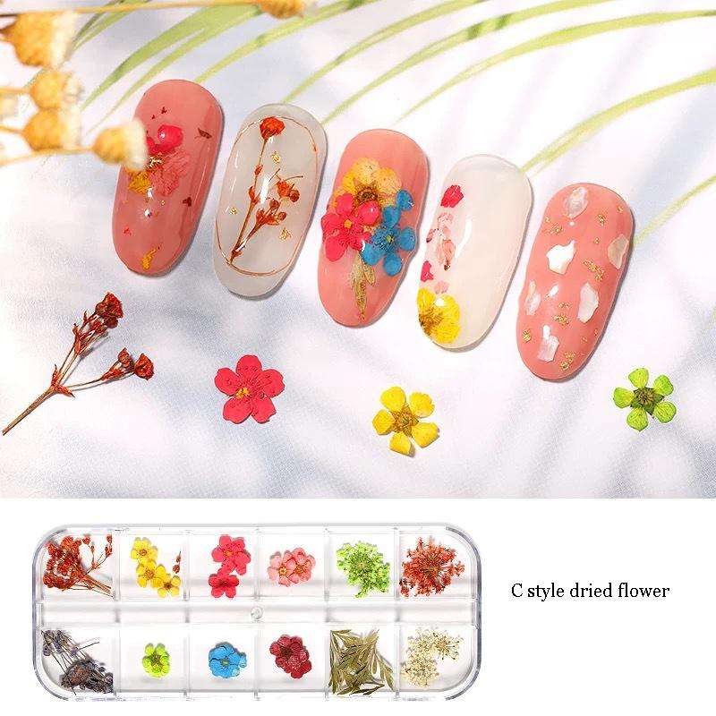 24 Colors Mini Real Natural Resin Dried Flowers 3D Applique Nail Decoration Kit Nail Art Supplies with Dried Flowers