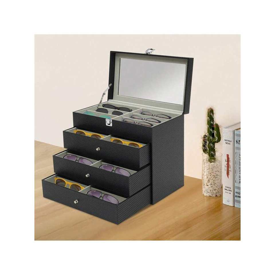 24-Compartment Black Lockable Sunglasses Case Tray Display Showcase Organizer Eyeglasses Sun Glasses Eyewear Box Eyeglasses Bags