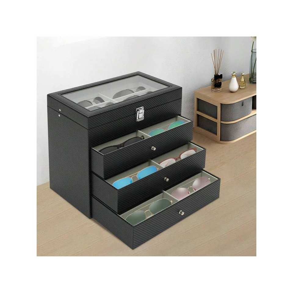 24-Compartment Black Lockable Sunglasses Case Tray Display Showcase Organizer Eyeglasses Sun Glasses Eyewear Box Eyeglasses Bags