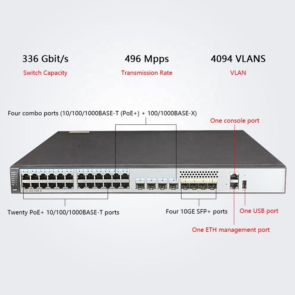 24 Ethernet 10/100/1000 Ports Switch 5720-28X-PWR-SI-DC Industrial POE Switch