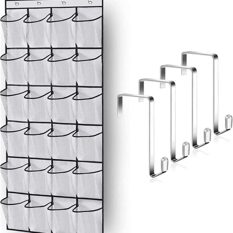 24 Grid Wall-Mounted Sundries Shoe Organiser Fabric Closet Bag Storage Rack Mesh Pocket Hanging Over the Door Cloth Box