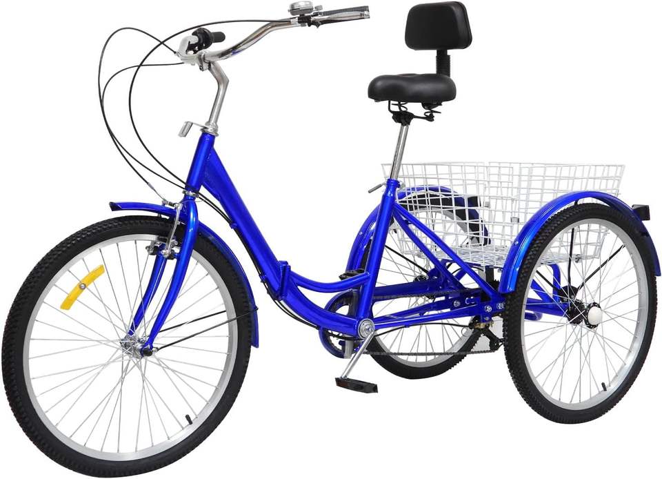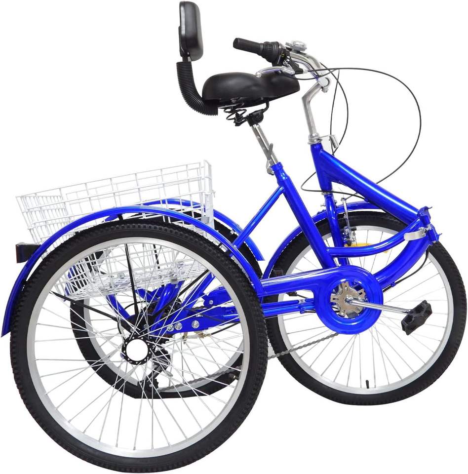 24 Inch Folding Adult Tricycle 7 Speed 3 Wheel Cargo Bike High-Carbon Steel Frame Perfect Gears Braking System W/ Basket