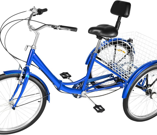 24 Inch Folding Adult Tricycle 7 Speed 3-Wheel Cruiser Bicycle Perfect Gears Cargo Shopping Basket 95kg Cap Trike Best Frame
