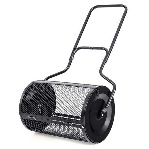 24 Inch Heavy Duty Rustproof Metal Mesh Compost Spreader 2.7 Cu.ft Large Capacity Lawn Spreader for Peat Fertilizer Spreader