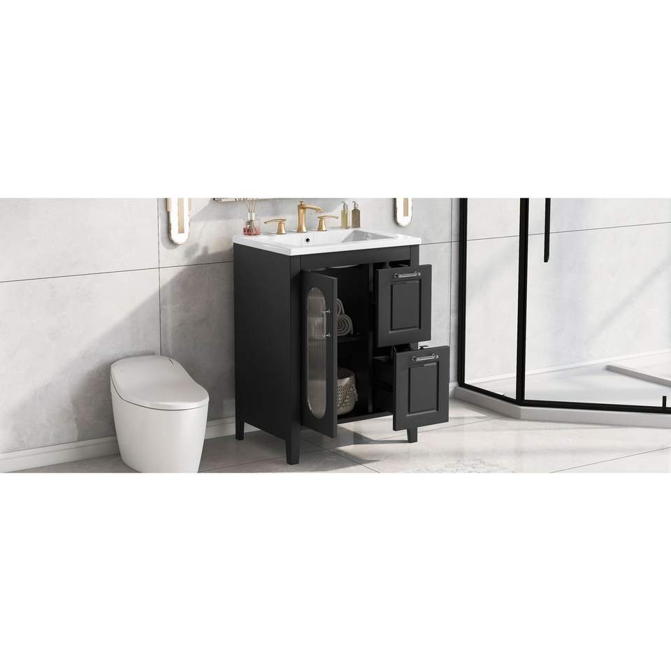 24-Inch Solid Wood MDF Black Bathroom Vanity with Sink Two-Drawer Cabinet Adjustable Shelf Solid Door