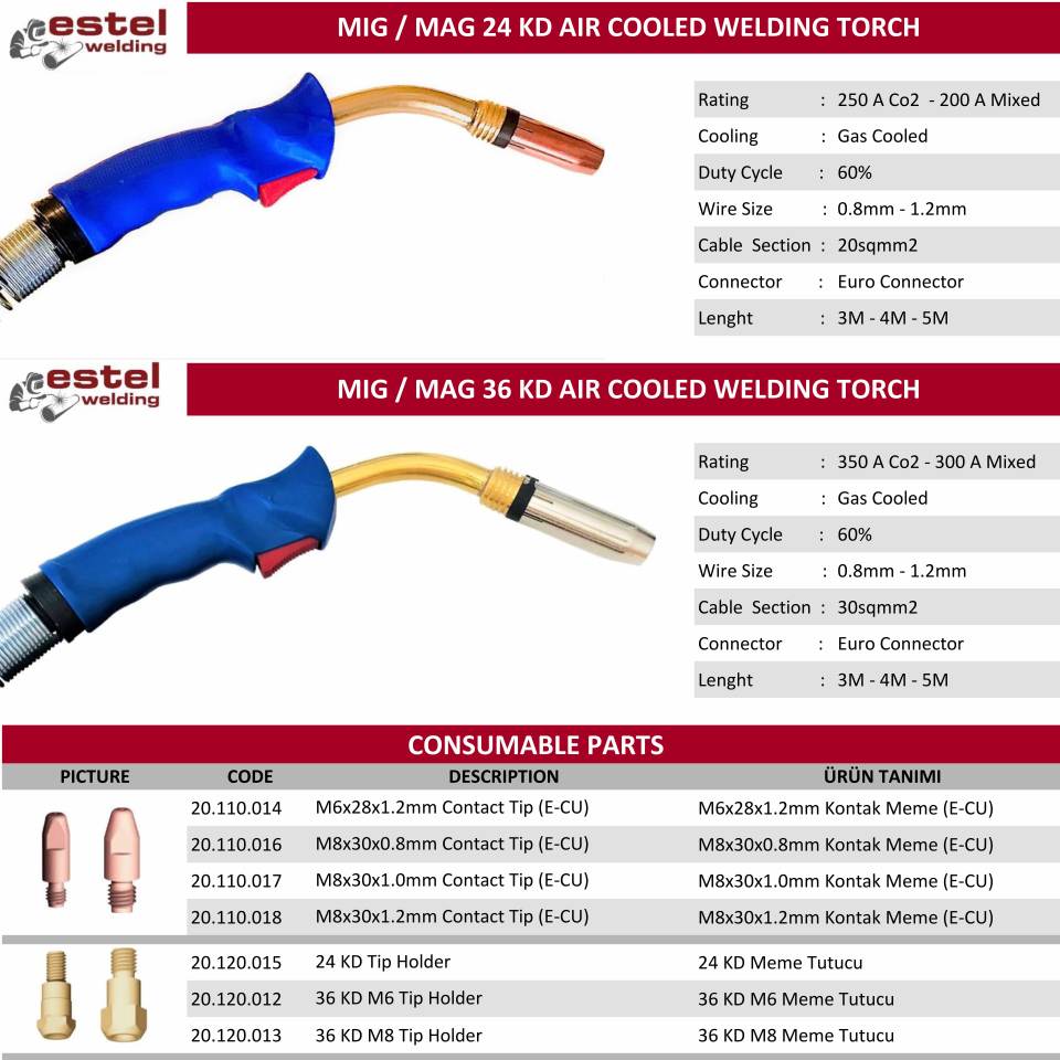 24 KD / MB MIG WELDING TORCH BINZEL TYPE AIR COOLED