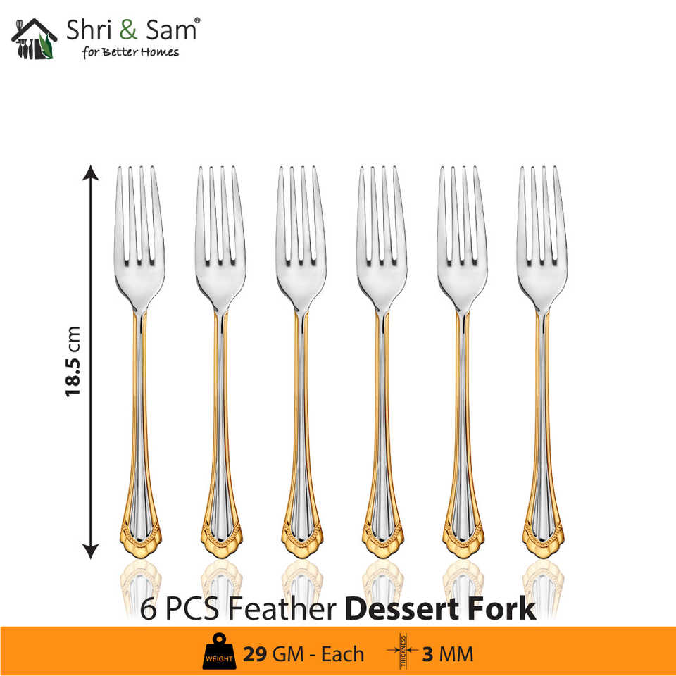24 PCS Stainless Steel Cutlery Set Including Dessert & Soup Spoon Feather Design Dinnerware Set