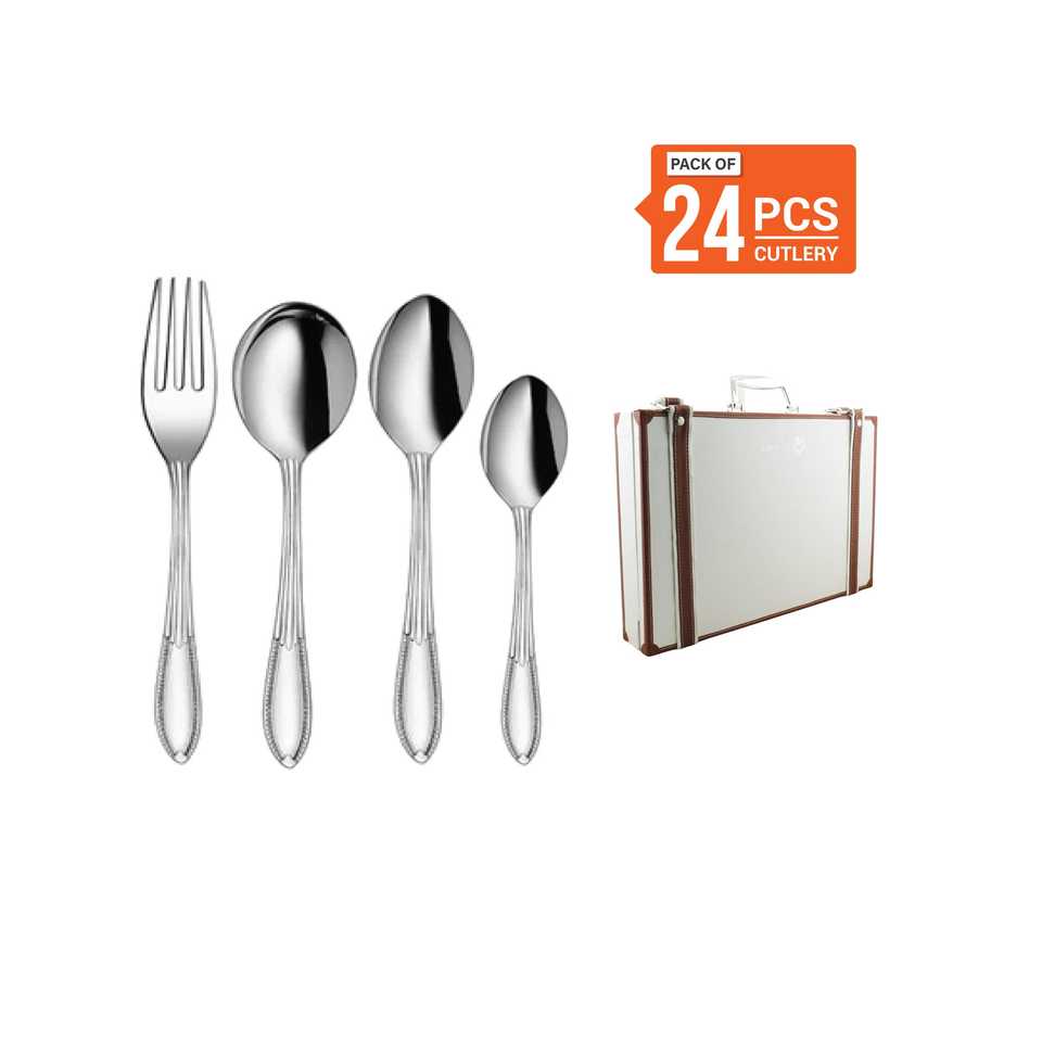 24 PCS Stainless Steel Cutlery Set 6 Pcs Each of Tea Spoon Dessert Spoon Dessert Fork Soup Spoon with Leather Case