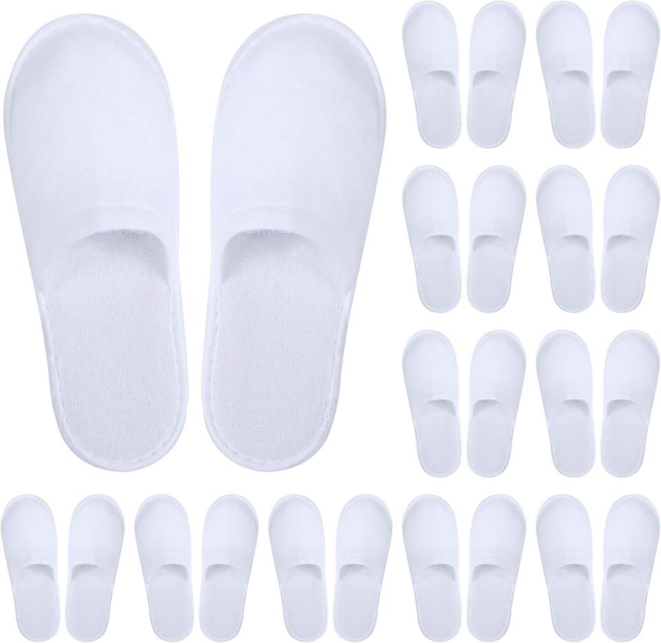 24 Pair Disposable Slippers Non-slip Closed Toe Spa Slippers for Hotel Travel Guest and Home White