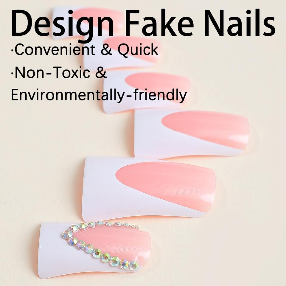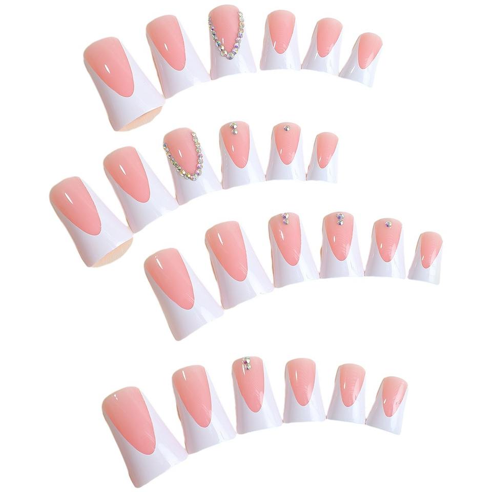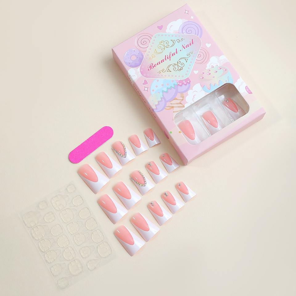12 Pcs/set Wholesale Almond Shape French Minimalist Art Acrylic Nail Tip Press on Nails with Glue Pre-designed Finger XB-85-92