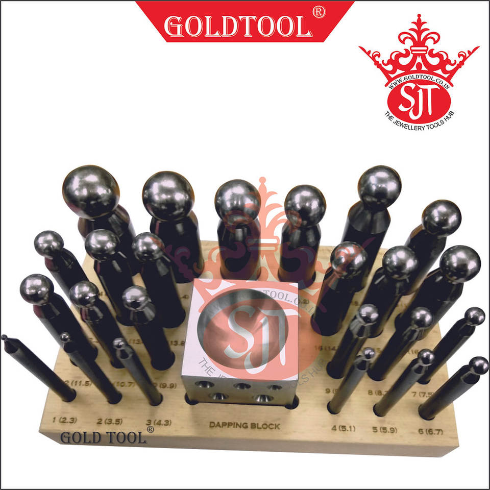 24-Piece Dapping Punch Set with Domming Block & Wooden Stand for Jewelry Tools & Equipment
