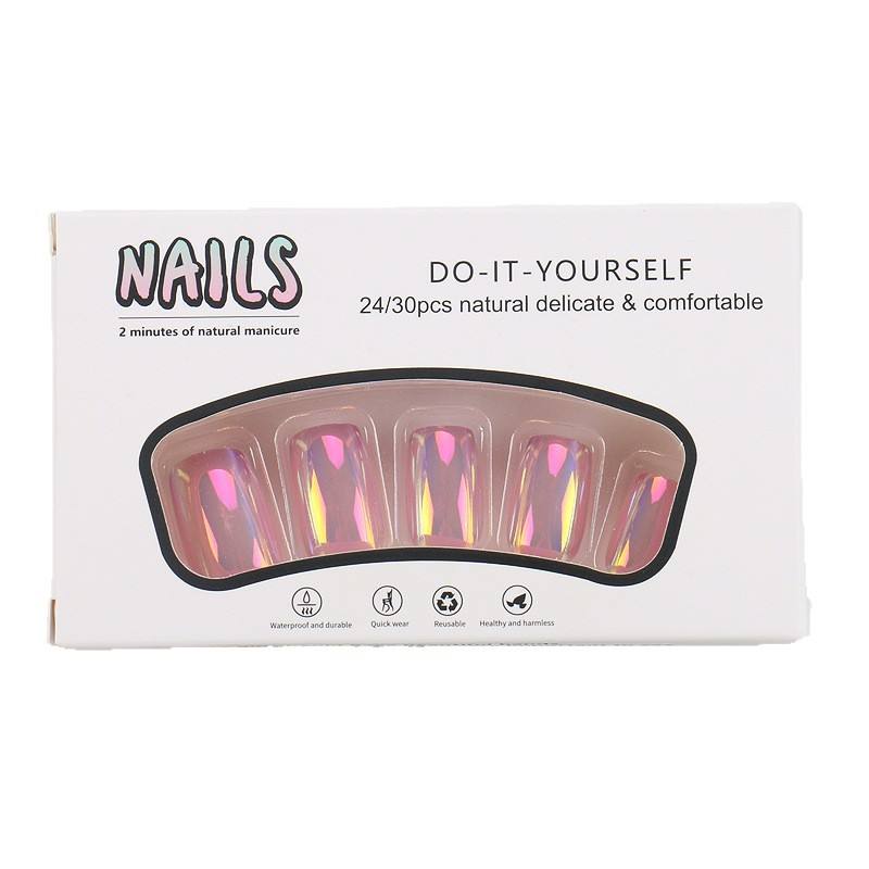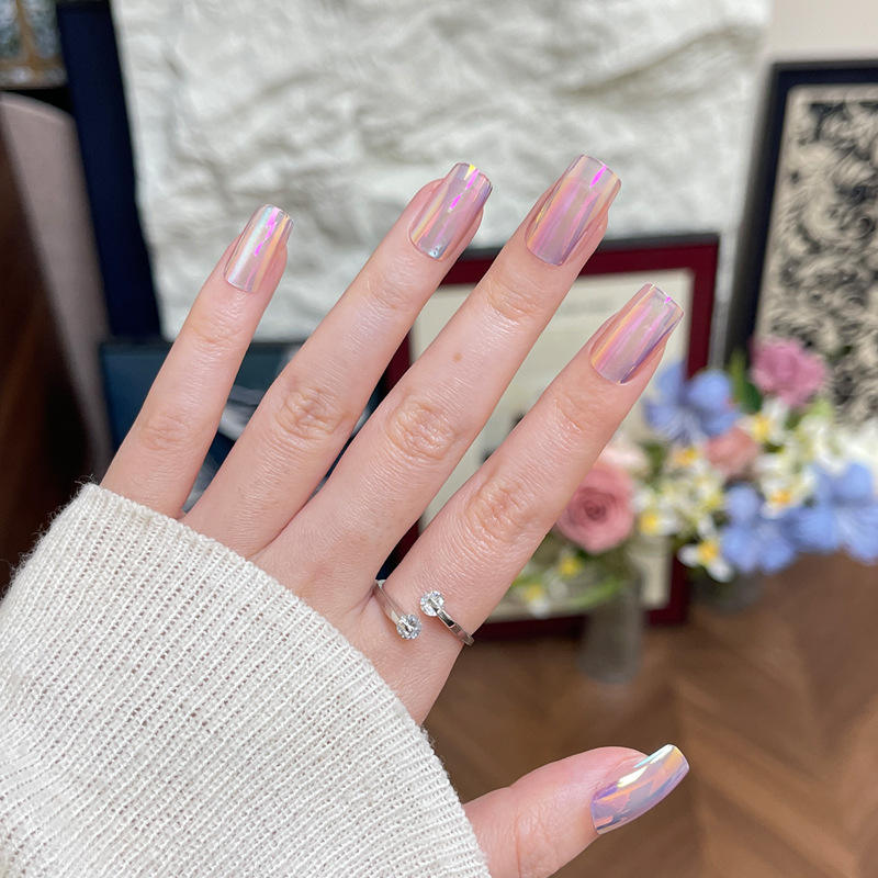 24 Pieces Laser Cat Eye Tips Finished Nail Stickers Wholesale Removable Fake Nails