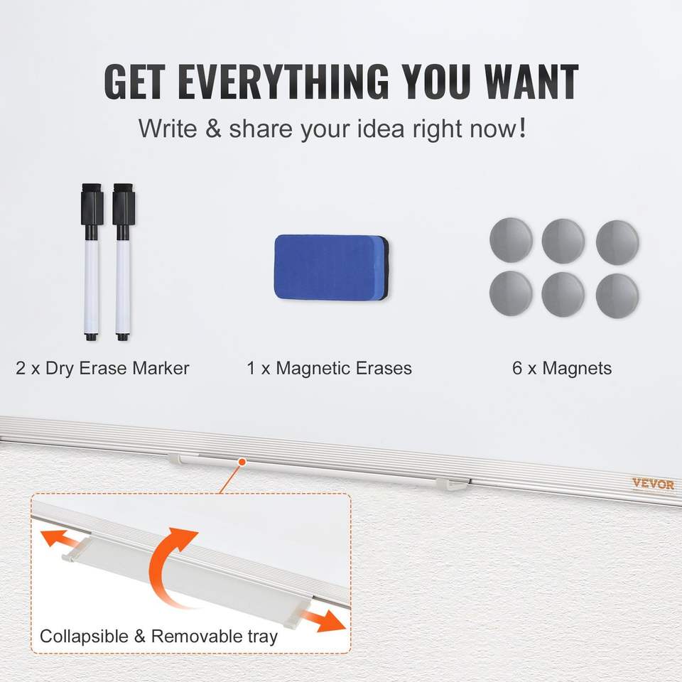 24 X 18 Inches Magnetic Whiteboard Aluminum Frame Dry Erase Board 1 Magnetic Erase 2 Dry Erase Markers Movable Tray for Office