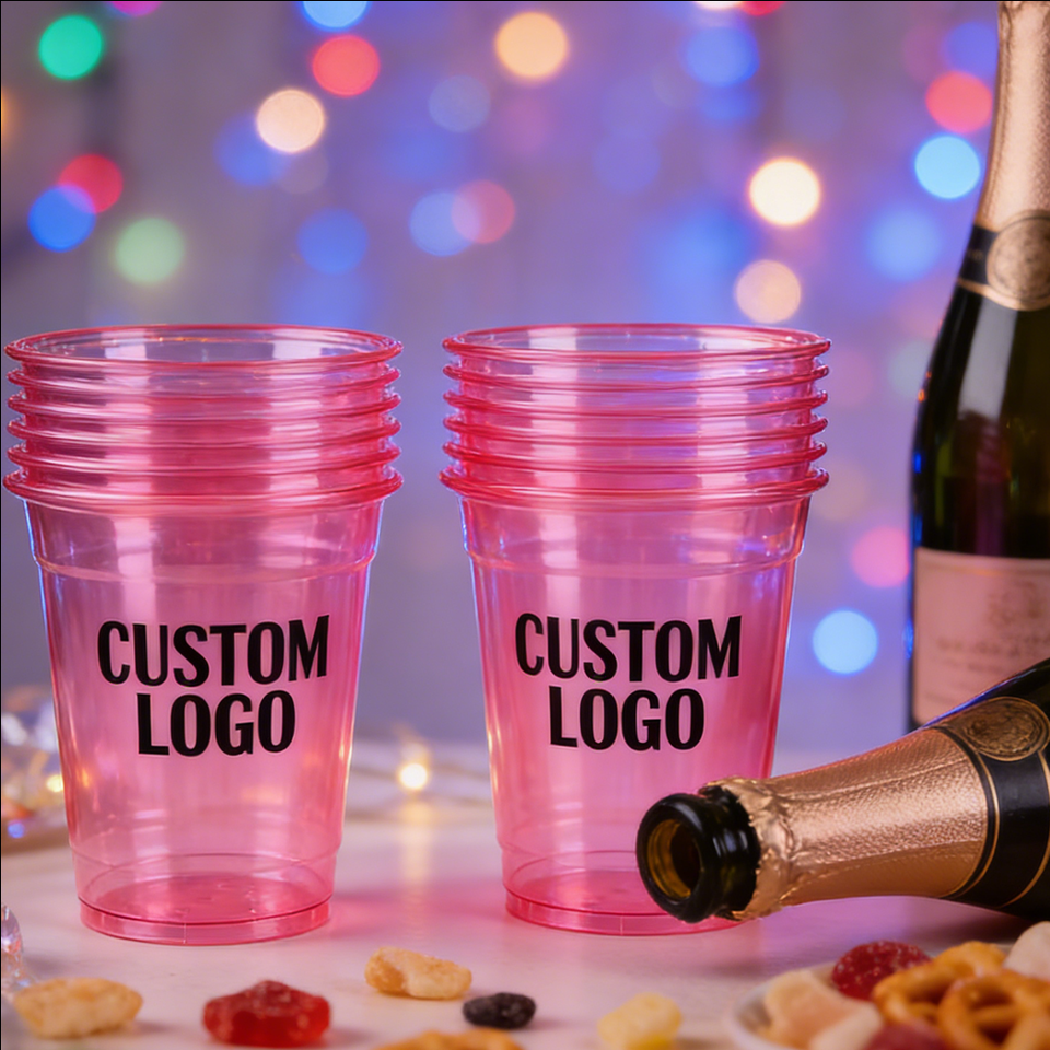 24 oz Pink Plastic Single Wall 90mm Diameter Wine Cups with Lids and Straws Disposable Party Supplies for Wine Drinking