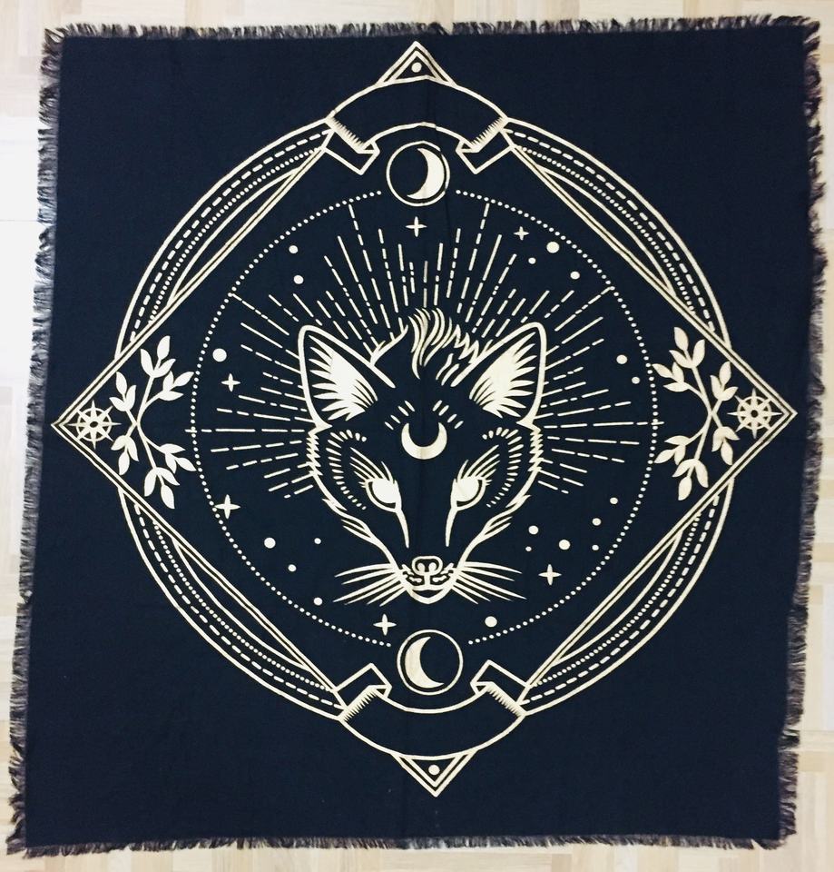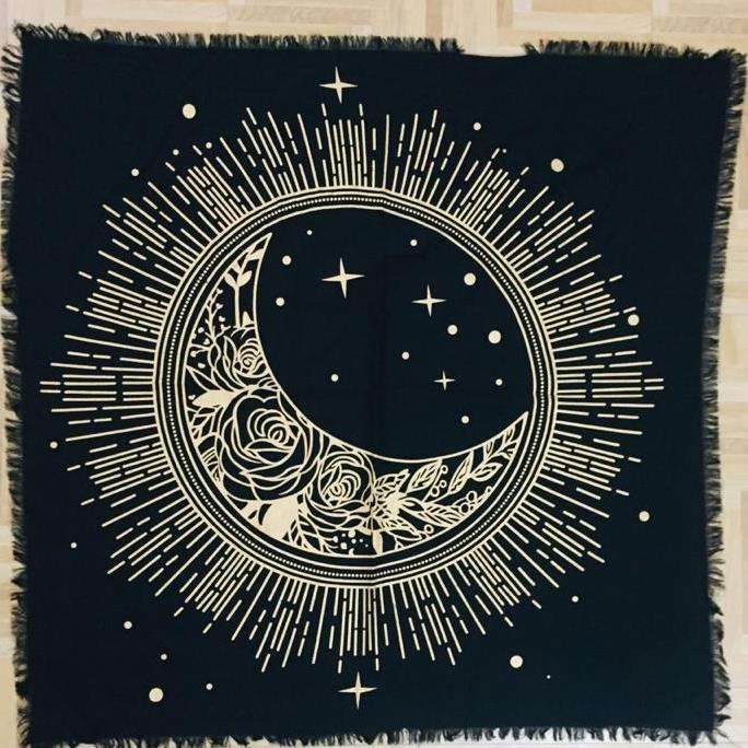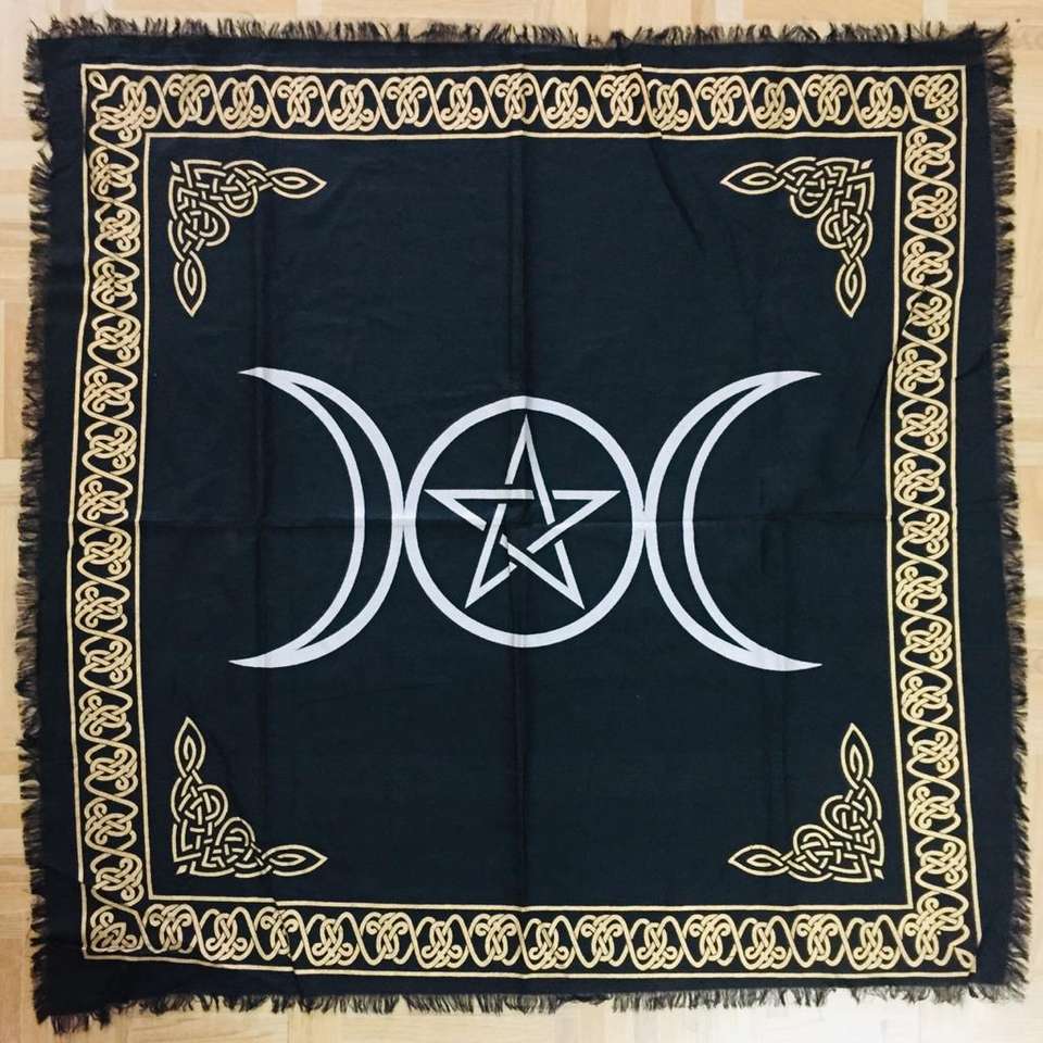 Handmade Triple Moon Angel Wings Wolf Pentagram Heart Tarot Spread Printed Altar Cloth for Home Decor By Indian Consigners