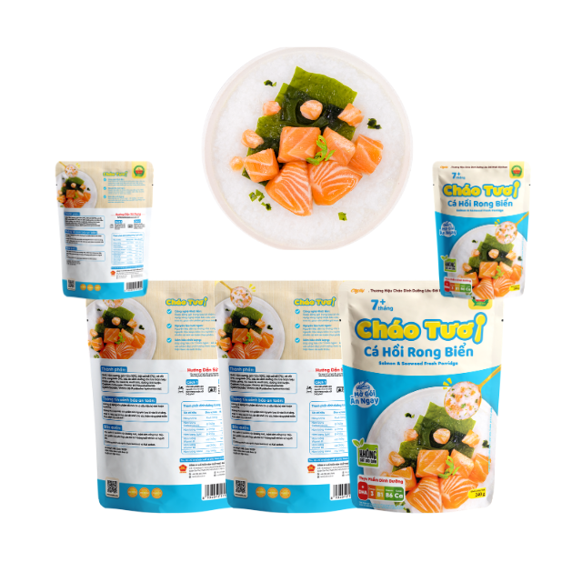 240g Salmon & Seaweed FCE Ready Eat Porridge ISO HACCP Certified Healthy Baby Food From Vietnam Dried Style in Box Packaging