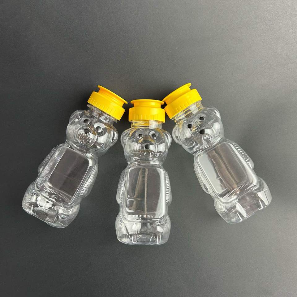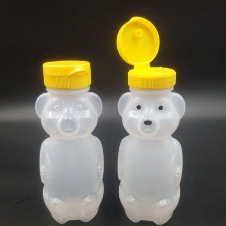 250ml Transparent Eco-friendly Non-toxic Plastic Honey Bottle Flip Top Silicone Valve Cap Pear Syrup PET Jar for Sauce Featuring