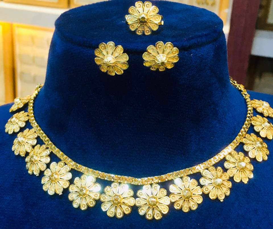 24K Gold Dubai Classic Copper Vintage Pearl Diamond Embellished Wedding Anniversary Fashion Jewelry Set Includes Necklace