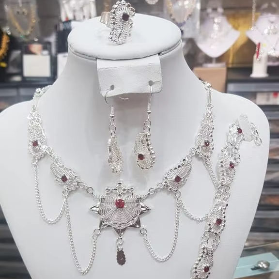 24K Gold Dubai Vintage Classic Pearl Flower Brooch Earrings Necklace Set Anniversary Fashion Copper Jewelry Gift