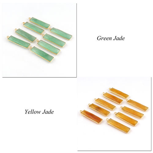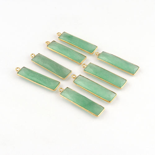 24K Gold Plated Custom Green Jade Bezel Setting Bar Shape Brass Jewelry Connector DIY Pendant Making Jewelry Findings Components
