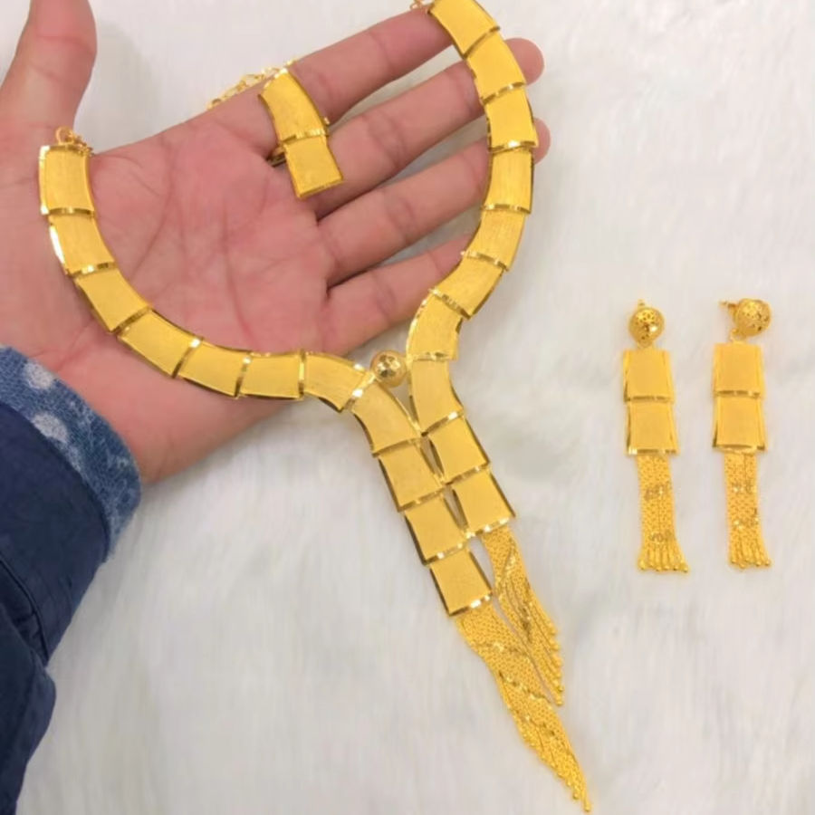 24K Gold Plated Vintage Comoros Mayotte Style Fashion Jewelry Set Includes Necklace Bangles Stylish Copper Diamond Gift for USA