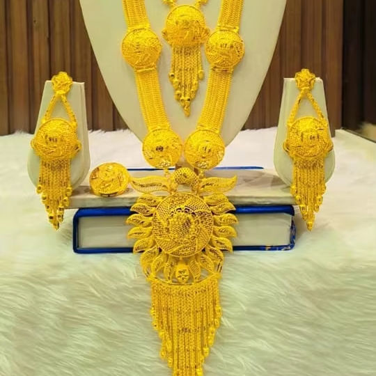 24K Gold Plated Vintage Comoros Mayotte Style Fashion Jewelry Set Stylish Copper Diamond Necklace Bangles for Gift in USA