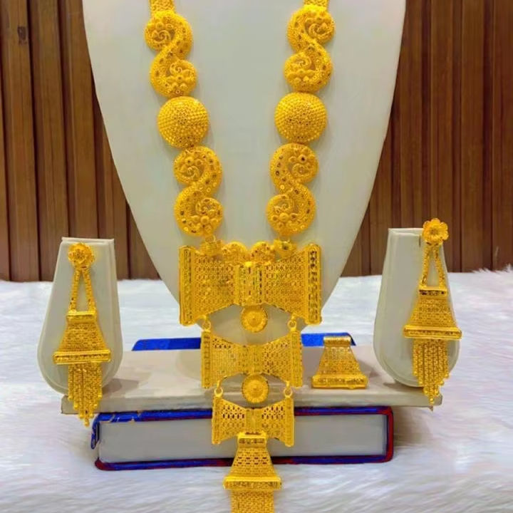 24K Gold Plated Vintage Comoros Mayotte Style Fashion Jewelry Set Includes Necklace Bangles Stylish Copper Diamond Gift for USA