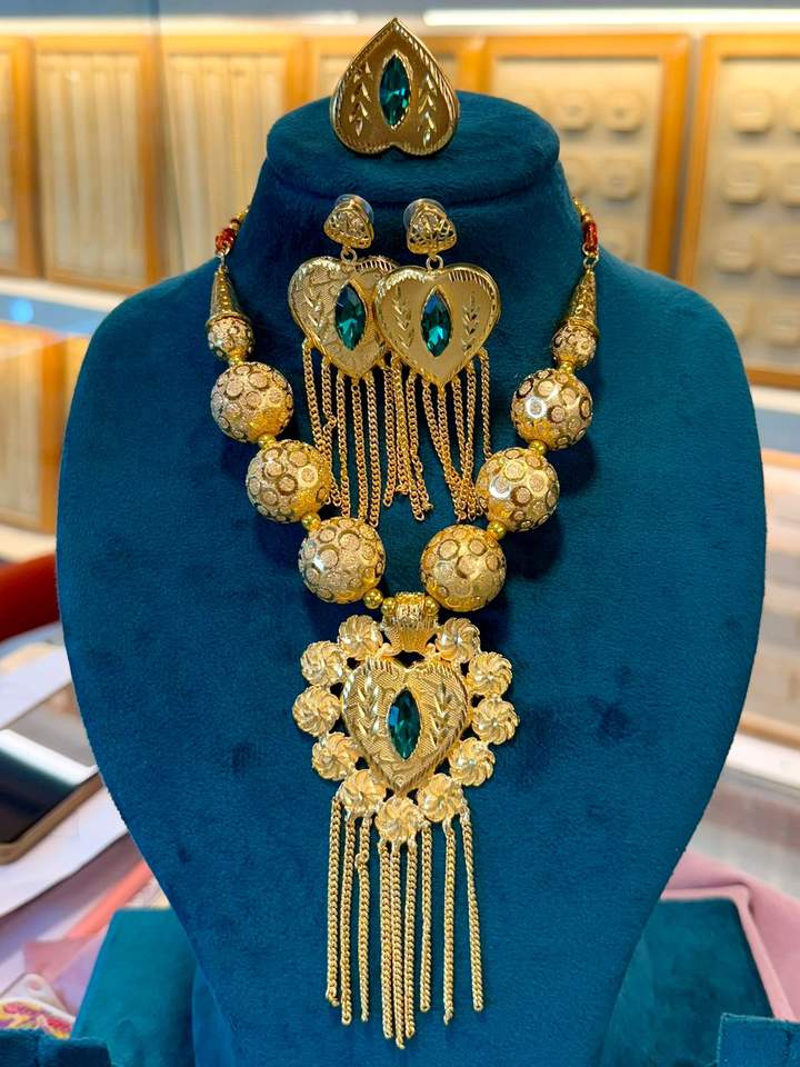 24K Gold Plated Vintage Dubai Fashion Jewelry Set Includes Necklace Earrings Bangles Combs Copper Material Diamond Germany