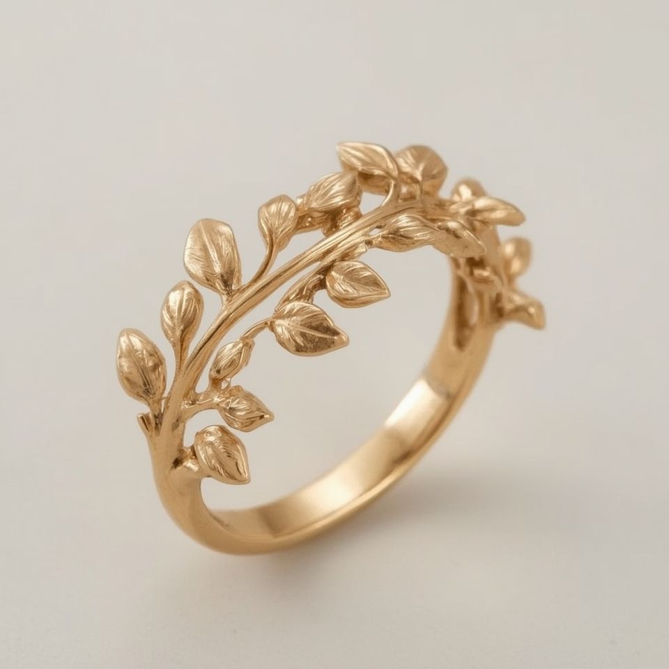 24K Real Gold Modern Botanical Leaf Ring for Women, Handmade Nature Inspired Fine Jewelry, Luxury OEM Design
