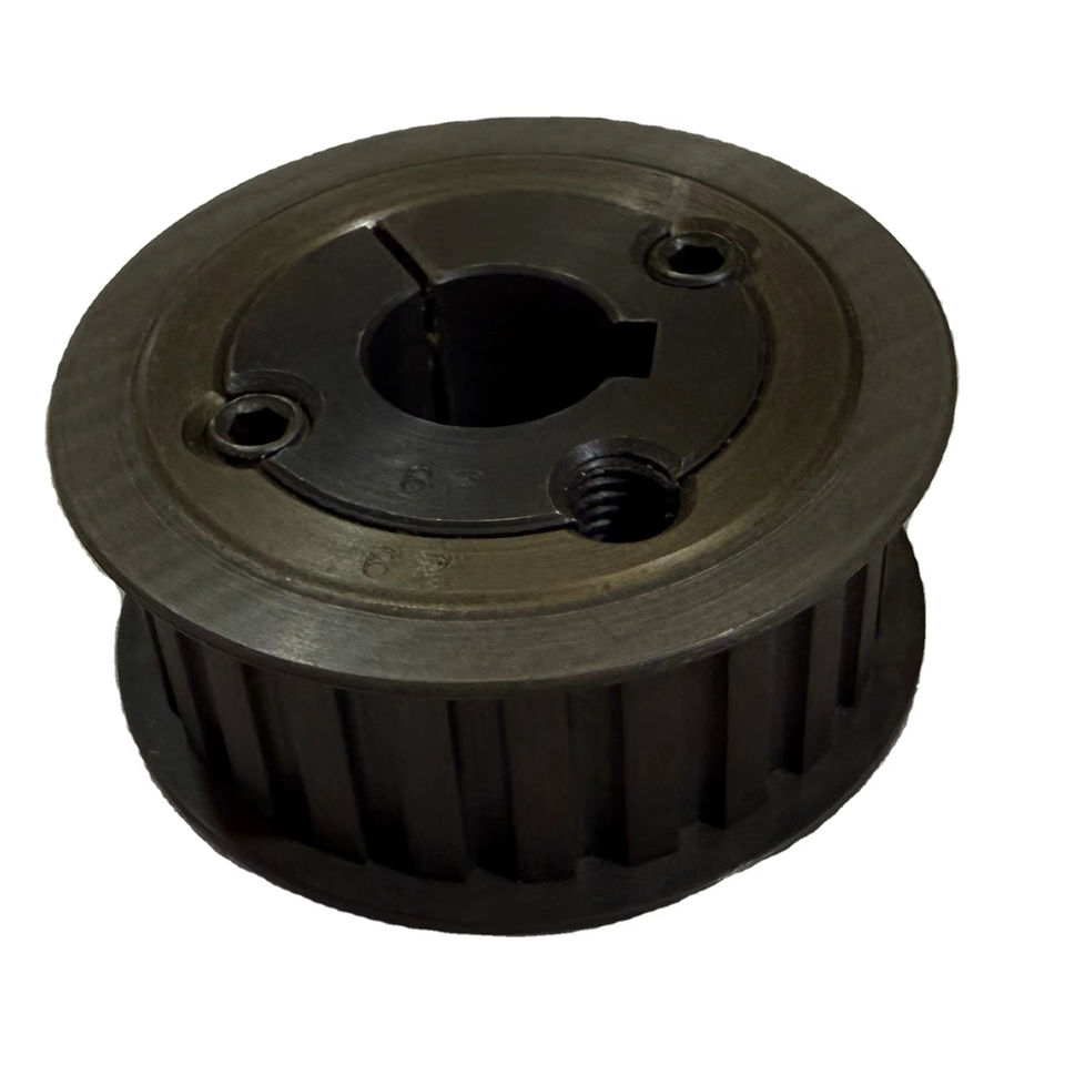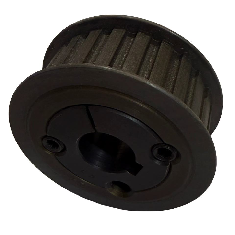 24T L100 TIMING PULLEY KEYLESS LOCK 25MM BELT WIDTH STEEL MATERIAL FLANGE FITTED BLACKODISED HARD ANODISED