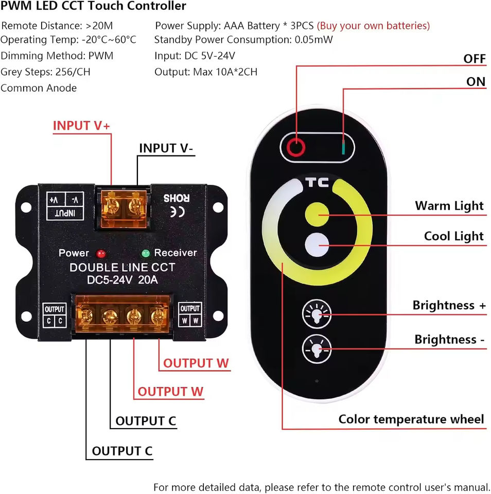 24V CCT COB LED strip light kit 10m2700k-6500k dimmable CCT strip light LED with remote control and power supply