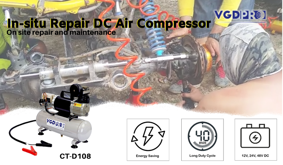 24V High Efficiency Weatherproof Long Duty Cycle DC Oil Less Professional Air Horn Mobile Mini Air Compressor Pump 8 Liter tank