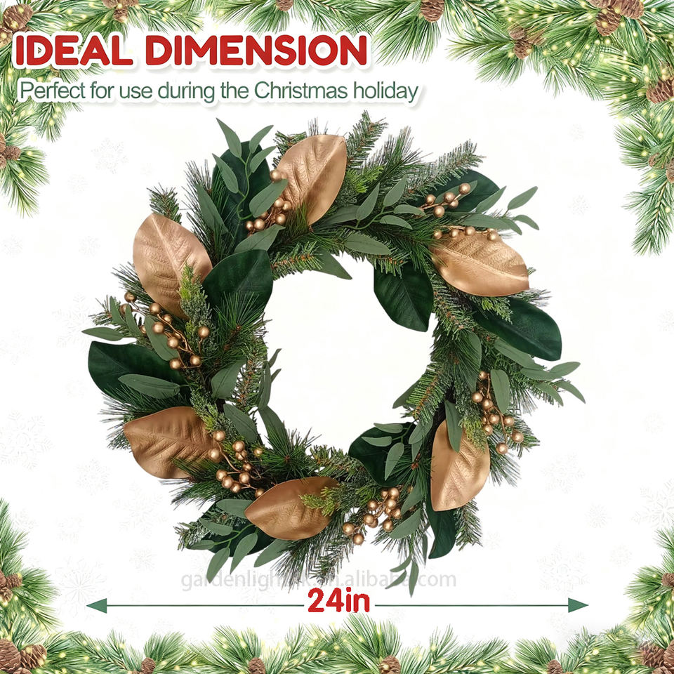 Product name:24in Christmas Wreath with Gold Leaves & Berries