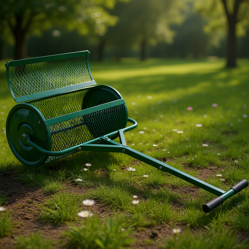 T-Shaped Handle Metal Mesh Compost Spreader 24inch For Lawn Garden Care Fertilizer Manure Roller Spreader