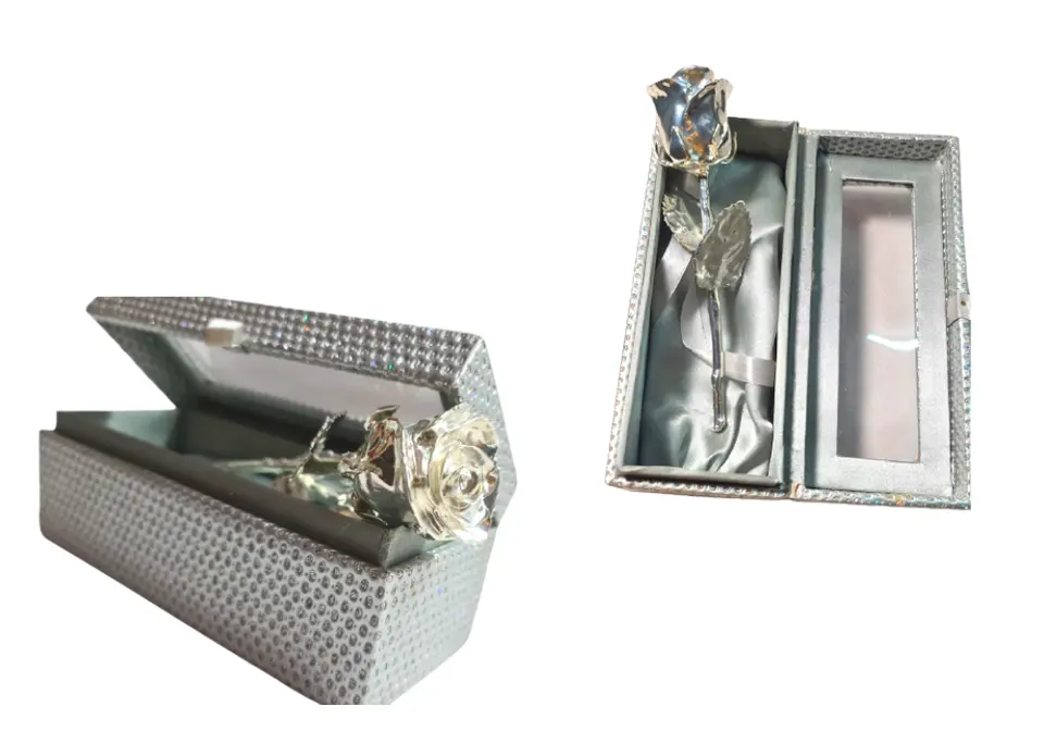 Product name:24k Silver Plated Artificial Rose with Silver Sparkling Box