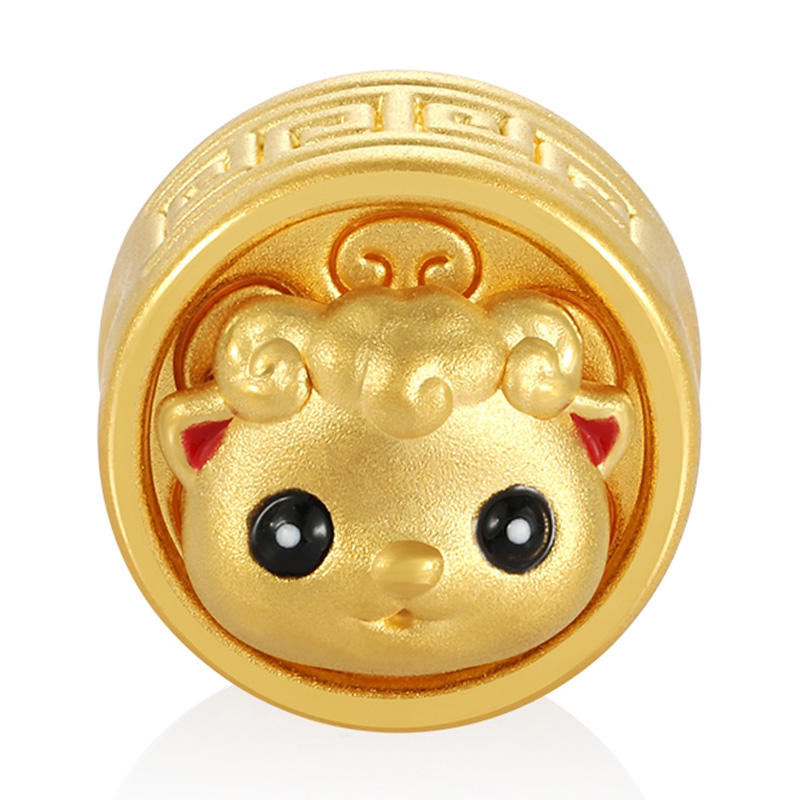 24k pure gold craftsmanship hard gold sheep-shaped rotatable round bracelet beaded high-end gold jewelry accessories