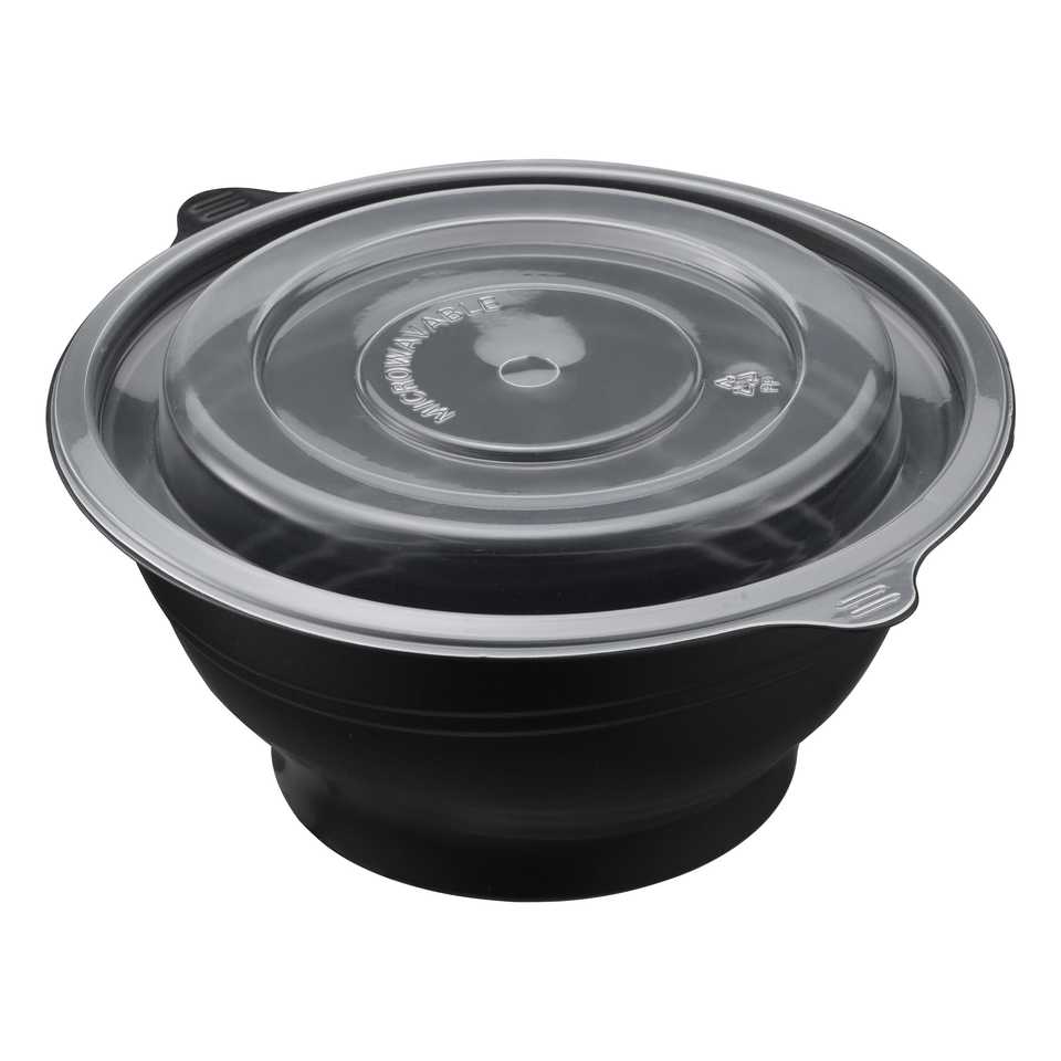24oz Round Black Microwaveable Bowl with Vented Clear Lid Leak Resistant BPA Free Stackable 120 Sets (40/6)