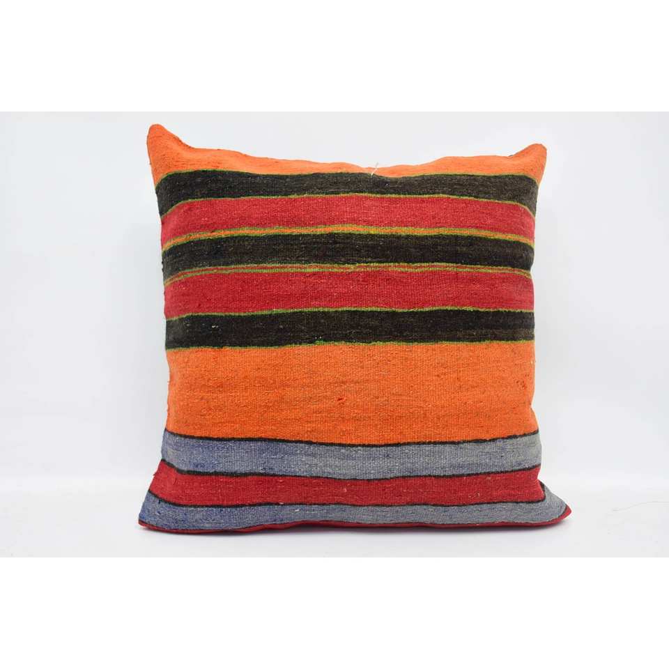 24x24 Inch Multicolor Kantha Patchwork Wool Pillow Vintage Pattern Woven Decorative Cushion
