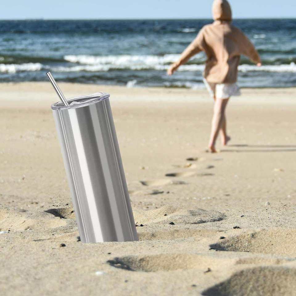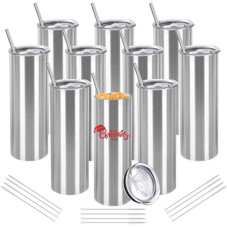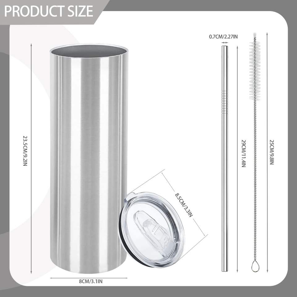 25 Pack 20oz Stainless Steel Straight Double Wall Insulated Tumblers Lid Straw Bulk Cylindrical Skinny Tumblers Blank