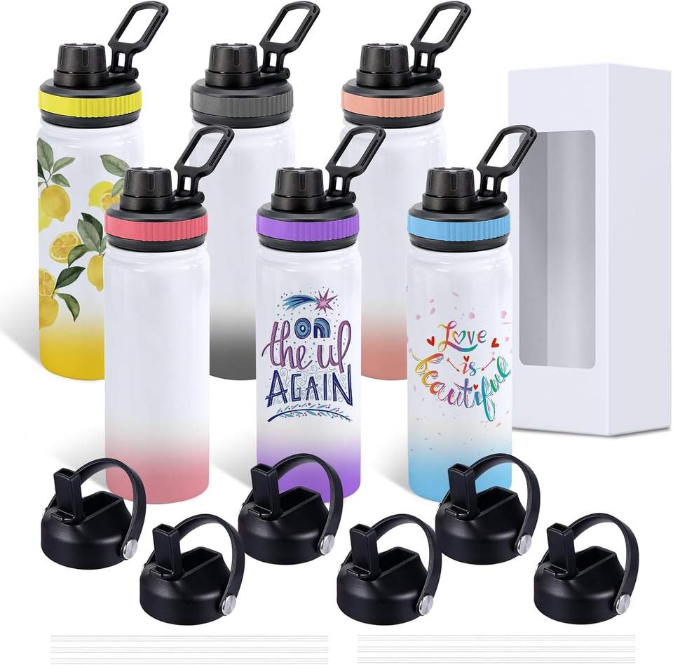25 Pack Sublimation Tumbler Bulk 20oz Skinny Straight Double Wall Stainless Steel Tumblers with Portable Handle Individually Box