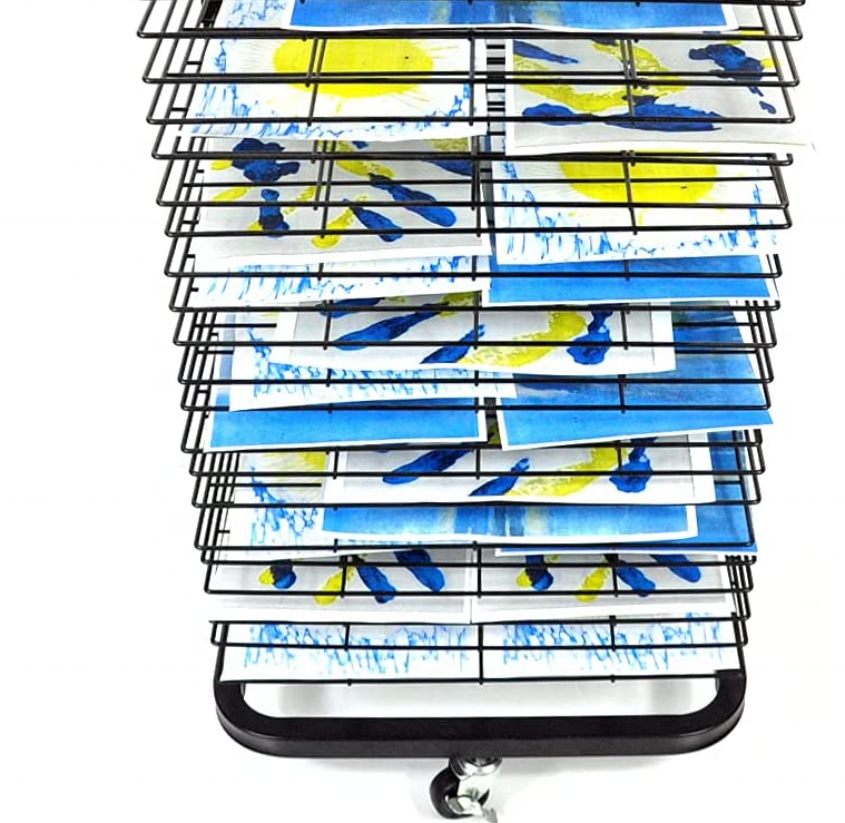 Single-Sided 25-Shelf Removable Metal Wire Art Drying Rack Flooring Painting Display Stand