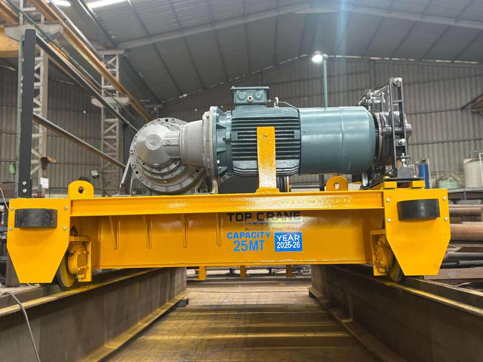 25 ton capacity double girder overhead EOT crane with electric hoist for industrial lifting and heavy material handling systems