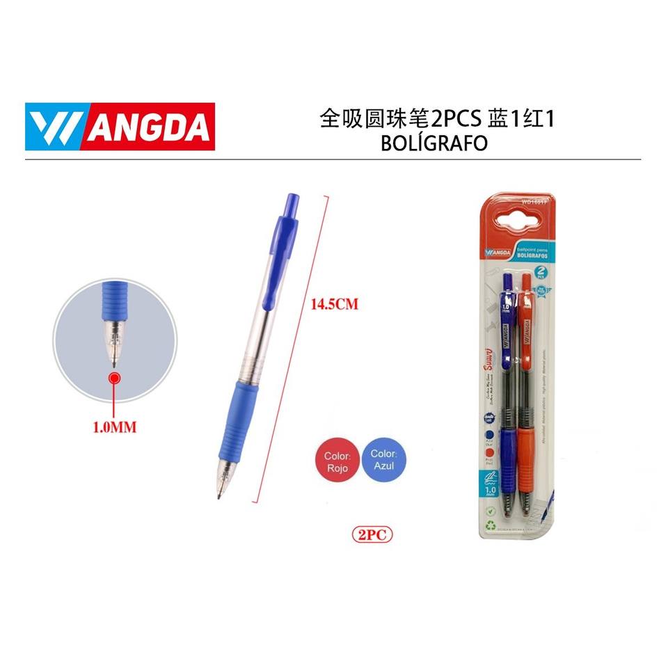 2509-3 Full Suction Plastic Ballpoint Pen Novelty Blue and Red 0.7mm Writing Width 2pcs Promotional Ball Pen with Orange Body