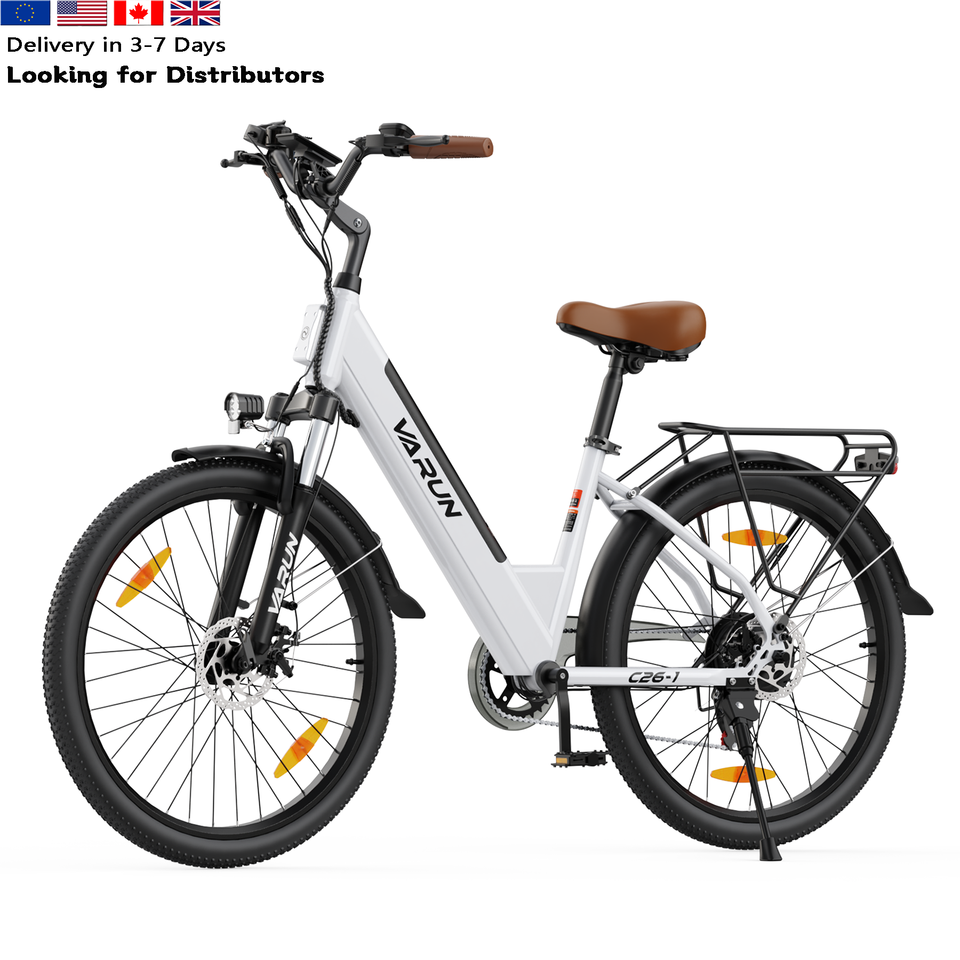 250W 48V 10.4AH Hybrid Electric Bike 7 Speed Low Step-Through Carbon Steel Frame 26\" City E-Bike EU/UK Warehouse Integrated