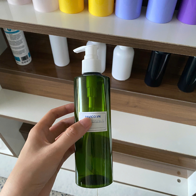 250ml Amber Green PET Cosmetic Shampoo Bottle with White Lotion Pump Refillable Plastic Packaging for Skincare & Haircare