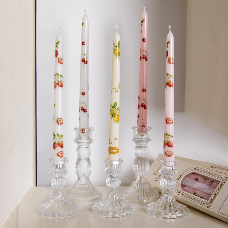25Cm Luxurious Handmade Smokeless Long Pole Fruit Print Candle for Diwali Wedding Romantic Candlelight Dinner Household